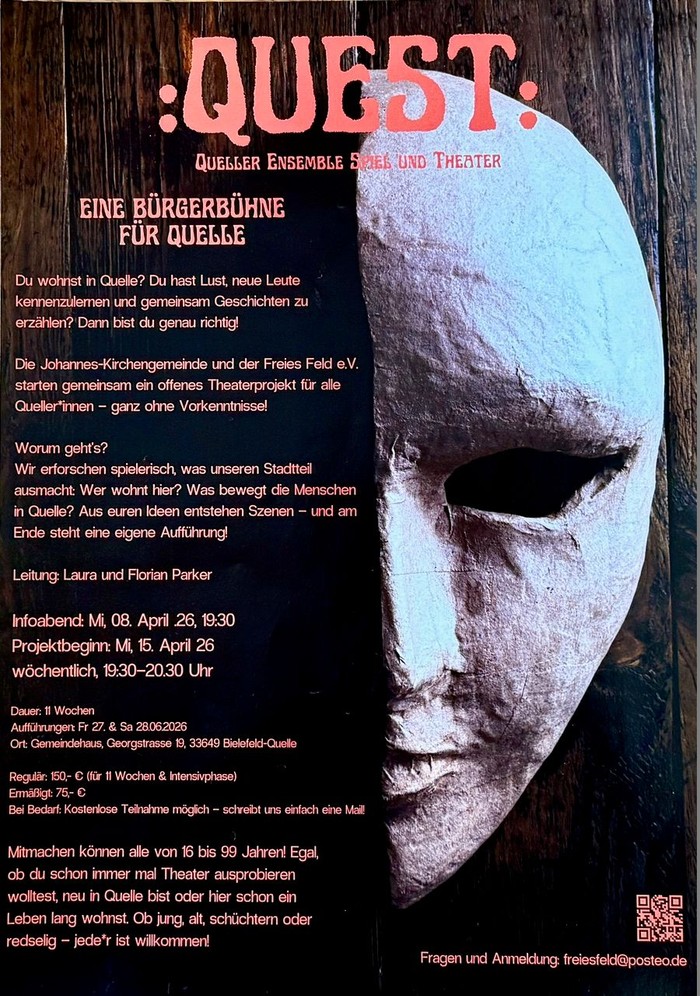 Das neue Theaterprojekt :QUEST: startet mit einem Infoabend am 08. April um 19:30 Uhr