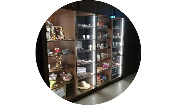 Süßigkeiten (aus Bioanbau) und Geschenkartikel.